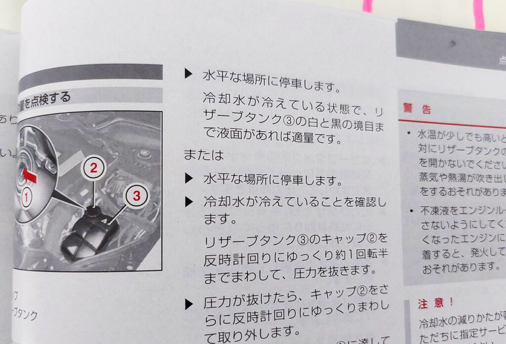 PS.ラジエーターの液が少ないので補充をと警告がついて、前回ガソリンスタンドで見て貰ったら、「入ってますよ!」と言われ警告ランプは一回消えて、今日また警告がついたので、また見てもらうと、「入ってます!」と返答されました。警告灯どうり、マニュアル参照と出てるので、いつもは全く読まない分厚い車のマニュアルをみたら、ここまでのラインまでラジエター補充液を出ていたので、それをガソリンスタンド員にみせ、補充液を結局2本足しました。んーー!マニュアル大事だな、お金もないし、これからこの車と長く付き合って行くのだから。