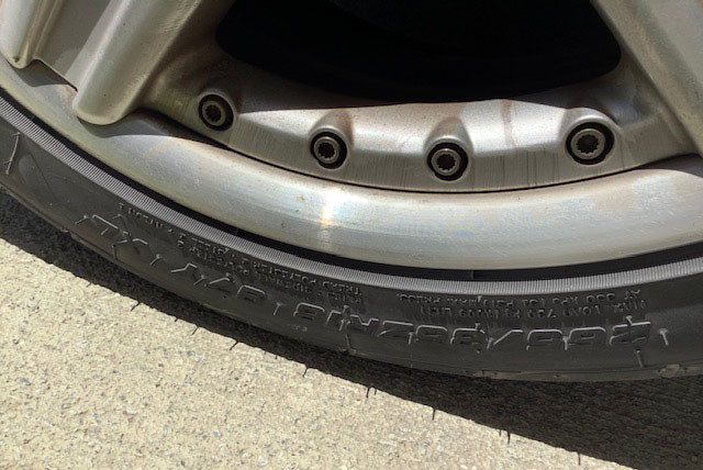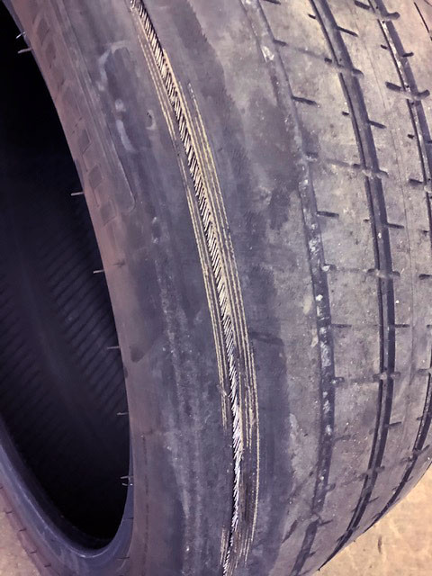 もしかすると片べりなんで、ホイルアラメントかトーアウトかも???結局、すぐにタイヤを交換しなければとタイヤ屋さんやカーショップを5件回って、やっと、同じサイズタイヤを見つけました。265の35タイヤ、一本だけ交換することもバランスが悪いので、とりあえず後輪2本。流石に同じメーカー置いて無く、取り寄せで時間がかかり、しかも超ー高いので。