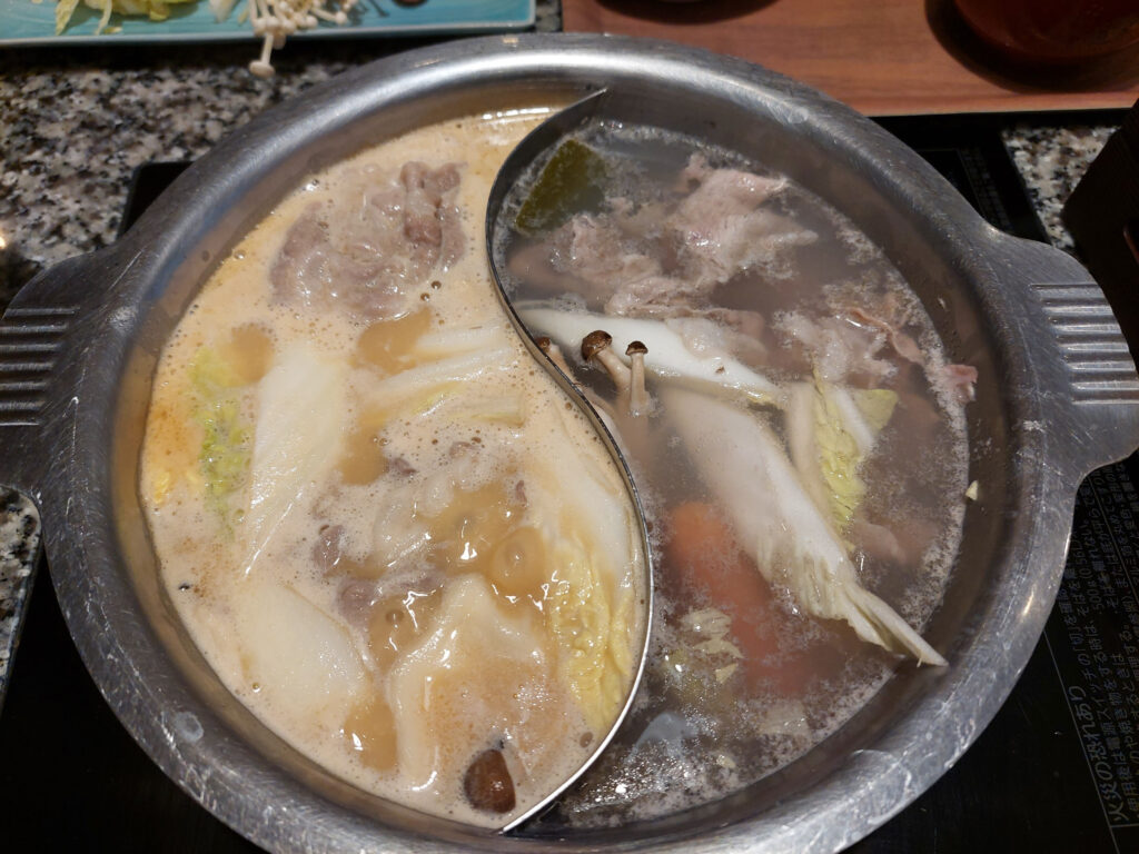 早朝からのバイト&トレーニング後。昼飯にバイト先の社長とイオンにある、しゃぶしゃぶ食べ放題の店に行ってきました。パン食べ放題のお店、に続き気になってた店で、昼からはちょっと???と思ってたお店。でーーー超ーーーガッツリ食いました、特盛りご飯をふりかけをかけて2杯、豚しゃぶしゃぶの肉80グラムを二人で10皿、野菜一杯、白菜、キノコ、ネギやの他、ソーセージ、水餃子。ドリンクバーも頼んでペプシコーラ3杯、超ーーー具だくさんの味噌汁です。