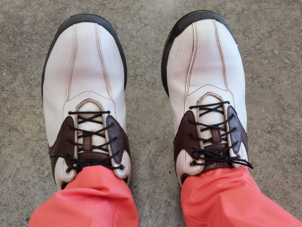 自分はしょっちゅう、靴を忘れるので、クルマには、予備のゴルフシューズが常備してます。(過去に、忘れて、ゴルフ場の高い靴を何足も買ってます)のに、代車なのであーあ!また、高い、靴を買うか⁉️でも、もしかして、このコースはリゾートコースなので、貸靴あるか聞いて、ありました。でも、ヒモです。それで、がんばりまーす。