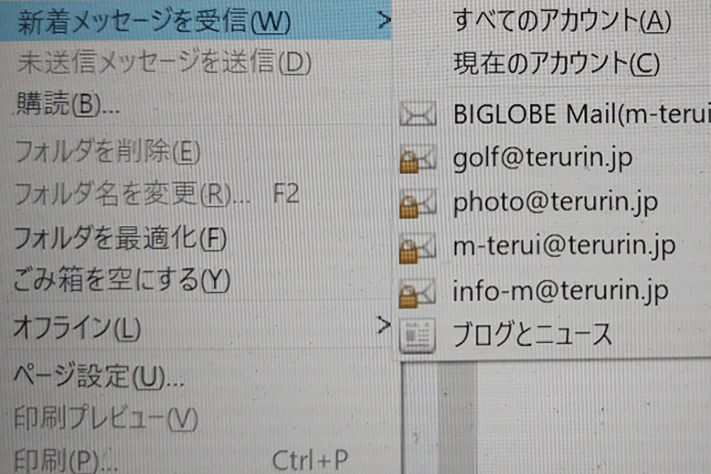 名刺に、テルリン工房のゴルフの問い合わせはgolf.terurin.jp 、写真撮影などは、テルリン工房のphoto.@terurin.jpで受けれなくなって困ってました。でグーペに問い合わせ、サンダーバードに問い合わせ、結局、サンダーバードのソフトを最新に更新すると、あっさり、問題解決!!!両方の(昔から使ってたメール、グーペのメール)メールが受けれれば、ソフトの更新かな??も片方だけだったので。