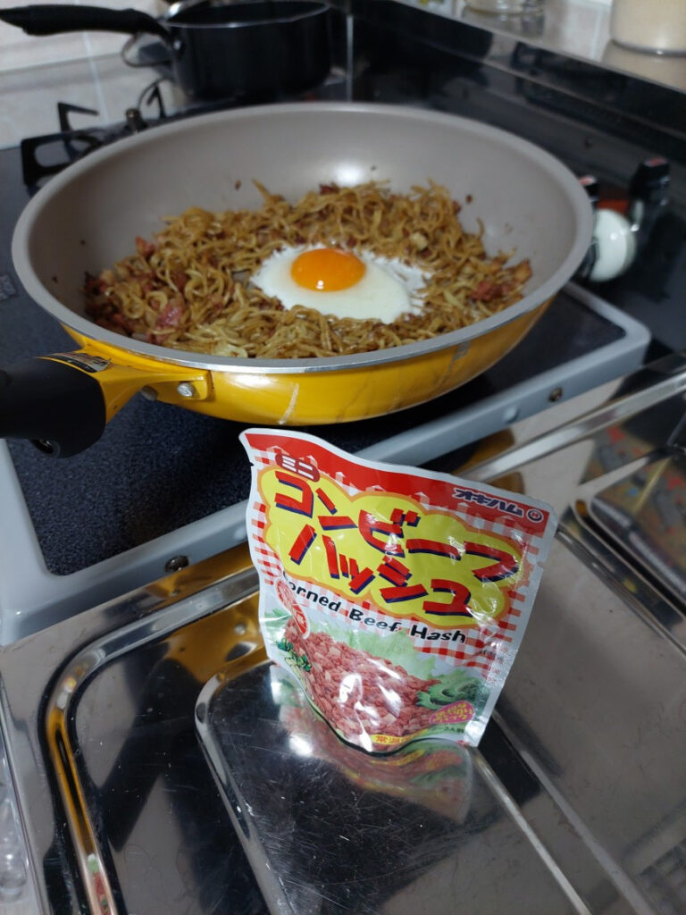 最近、ちょっとこの組み合わせに、ハマってます!。簡単時短メニューで、4分-5分ですぐ美味しーい!!!です、マルちゃん焼きそばとコンビーフハッシュ。コンビーフハッシュの油があるので、油は一切使わず、軽く炒めて、真ん中に卵を落として完成。半熟にして、麺とからめながら、食べます。最近は2日に一回ぐらいのペースでこのメニューを食べてます、簡単でカップラーメンやカップ焼きそばより、全然旨いので・・・。