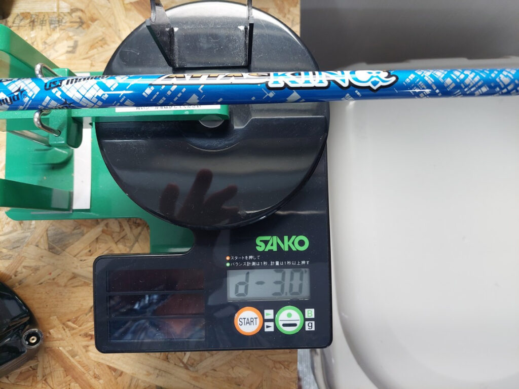 本題は、まず振動数とバランス、ネットで公開されていたデーターから推測して、4Xで45.25インチで251cpmだったので、自分には、ちょっと硬いですが、「シャフトを46インチで注文するので、長くなる分、振動数柔らかくなるはず、240cpm台に・・・」と計測してみると、244.89cpm、バランスはD3で重量が301グラムでした。お任せでお願いしたグリップはSTMはちょっと硬いので自分で交換しようと思います。まだ、4Xしか届いてないですが、これから練習場にスカイトラックを持って行って、打ってきます。