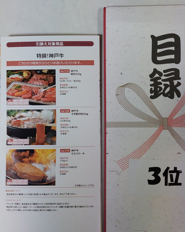 小島選手は前半やらかしながら41、義弟の井筒さんもバーディーチャンス何回もはずして、41です。でも、昨日のツキサップ効果か?後半は、しっかりコースマネージメントができて3パットか2回ありましたが39でトータル83でまわり、ハンデ10弟にあげても勝ちました!2勝2敗に・・・得失点差では負けてますが!70人以上のコンペでダブルペリアなら、ハマれば上位もあります。優勝は道内旅行、使えないので入りません、準優勝の美唄コース券も北海道在住ではないので入りません!3位の特選、神戸牛コースが、弟と当たるなら、これが良いな!と言ってました。弟は17位、飛び賞にハマらず。で自分は???な!な!なんと、ハマりました!狙っていた3位に、特選神戸牛ゲット!今夜は肉だー肉と思って、賞品を受け取れるので、ラッキーと思ってたら残念ながら目録でした!