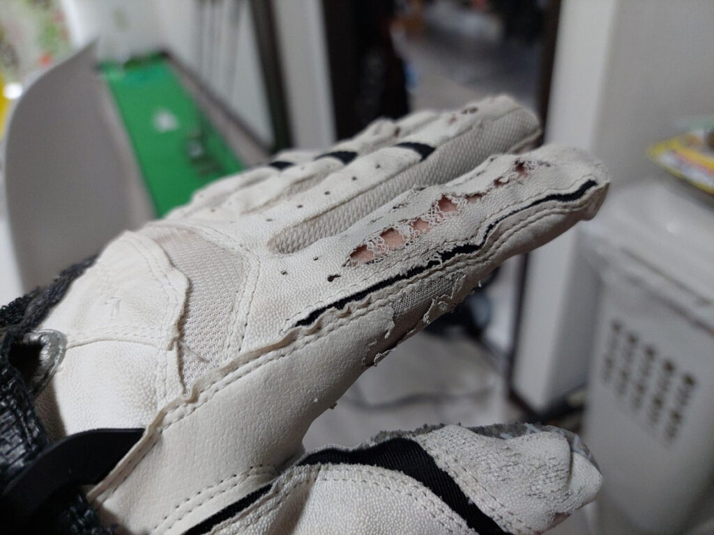 なので偶然、合うのを見つけると最低でも10足以上は買います、ラウンド数も多いので・・・。今、使ってるアディダスのグローブも、沖縄の浦添のお店で偶然、見つけてそこに、自分に合ったのがあって、そのサイズを全て買いました(多分10以上)はずなのに・・・もう、1年!!4足しか残って無くて全てボロボロです・・・。流石に、また探して買わなくては・・・。