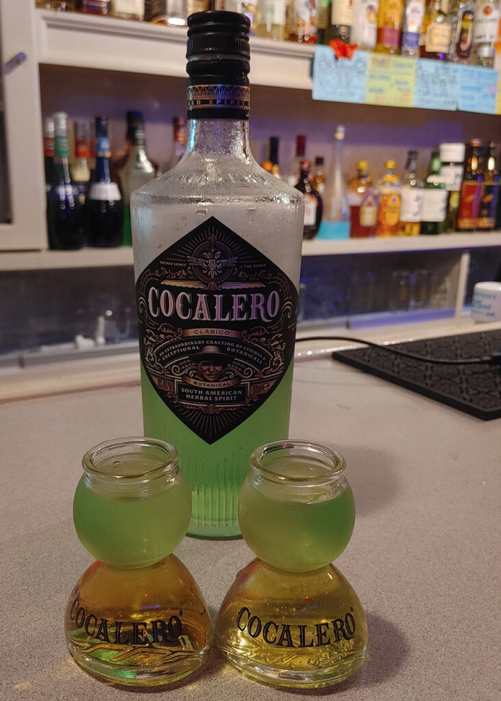 オーナーは自分と同じ北海道出身で、自分がいつもと同じ、メーカーズマークのロックを飲んでいると・・・。外人のお客さんが不思議な、形のグラス?に入ってるものを飲んでいて、自分も興味深々で・・・注文してマスターとお客さんと3人で一気!!飲みしました・・・。コカレロというきれいな緑色リキュールで、コカの葉などのハーブで作られたお酒です。それをひょうたん型コカボムのグラスに、コカレロとレッドブル半分ずつ入れて、色合いもオシャレです・・・その後も、結構飲んで、結局閉店まで飲んでました・・・。ちょっと飲みすぎ!!!たまにだから良いか???でも、そういえば、ゴルフ前から、炭酸麦ジュース飲んでたんで・・・時間でいえば15時間か???