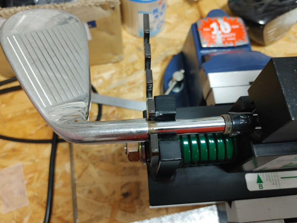 今回は、折れた場所がセットできるので、抜いて、同じシャフトを差し込むだけの簡単な作業と・・・思ったら、新しいシャフトが細すぎてスカスカ?これだと、一回、スペーサーをシャフトの先端に接着して、口径を太くして、調整しなければ・・・と数種類ある、スペーサーの中から、合いそうな物を選んで、装着しから、先端の口径がアップした、シャフトをアイアンのヘッドに入れて、接着して完了しました!!!