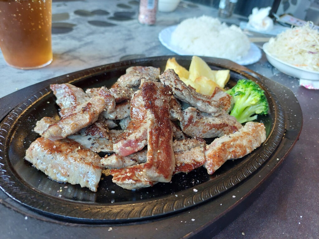で・・・もう昼、採血にそなえて、朝飯を食ってこなかったんで、ガッツリお腹が空いてて、肉増し増しにして、ステーキが来たときは300グラム多かったかな???と思いましたが・・・ステーキを300グラム、ご飯特盛、サラダ特盛、スープ特盛、麦茶3杯!!!!帰ってきて、チョコバーを食べて、体重を計ってみると、流石に増えてました・・・・68.5キロ、2キロ増です!!!2キロも食ったの???