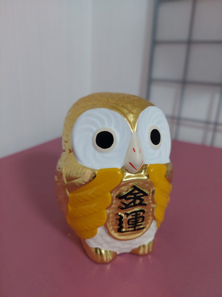 テルリン工房の奥に在った、金色のフクロウ君を玄関に移動しました!!!