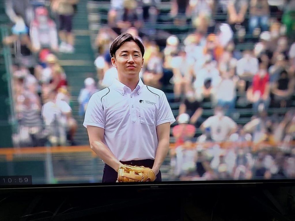 PS2あれーーー始球式は祐ちゃんだ・・・高校野球ではマー君との伝説の投げ合い・・・自分もその時に、甲子園球場で彼らを撮影していました・・・祐ちゃんはその後、北海道の日ハムの選手に・・・。やはり、甲子園球場には祐ちゃんの爽やかな笑顔を似合う!!!