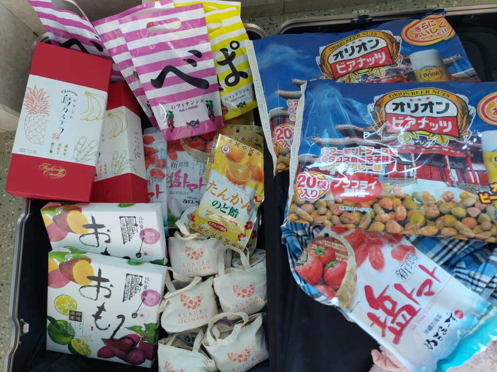 いつも、旅行とか帰省は行くときが、凄い時間がかかって向こうについてからの、日程はあっという間に終わります。なんでだろ?お土産、収納用に半分以上カラのスーツケースに沖縄のお土産を北海道の知人、友達に買いました。小腹がすいたので那覇空港で大東寿司を買ってたべました。とても小さくて880円なので、多分たりないので2つ買いました、やっぱり一個じゃあ足りなかったので正解でした。入荷するとすぐ売り切れになる、商品みたいです!