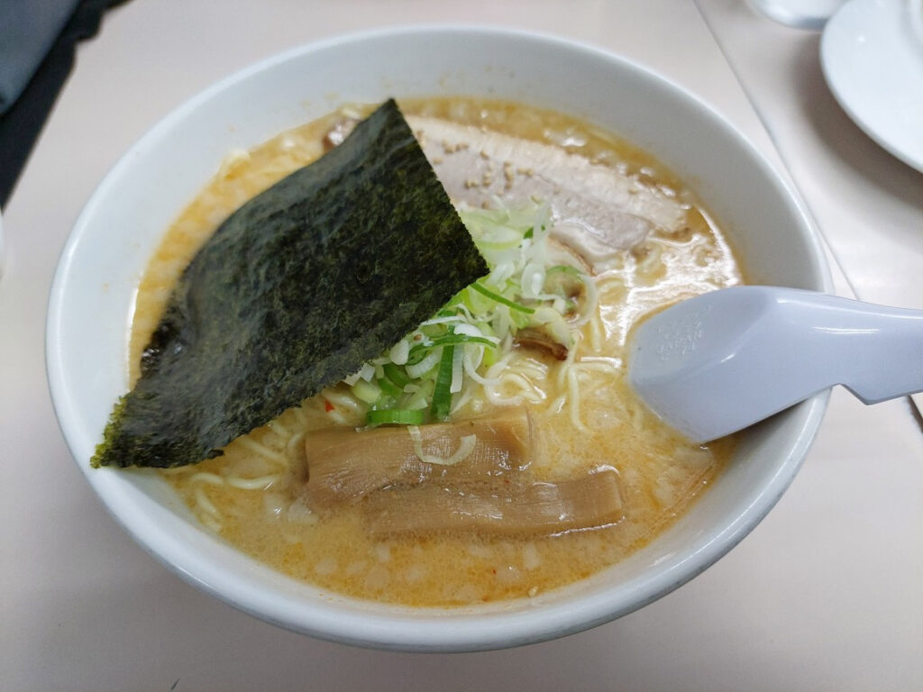 入り口のカウンターの所には、自分がトーナメントで撮影してプロにあげた写真が飾ってありました。溶剤を受け取って歩いていると、人気ラーメン店の五丈原があり行列もしてないし、のぞいて見るとめずらしく、ガラガラ?即、入店して、味噌ラーメン、麺を固めに、チャーシューおにぎりを頼みました。
