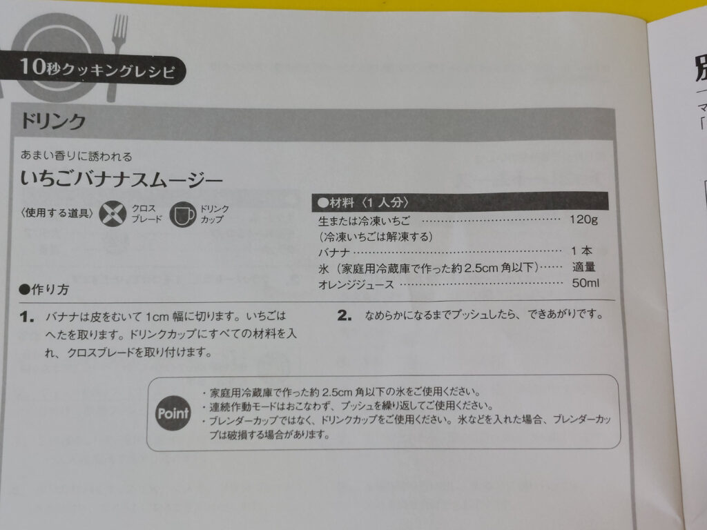沖縄に帰って、さあー、島バナナジュースでも、作るぞ!!!と思って、説明書を見返すと、あれーーー????テレビで観た部分の記憶では、ドリンクカップで、ささっと作ってるイメージしかありませんでしたが・・・上に付けるブレンダー???ジューサーのも必要???札幌から持ってきてないんだけど・・・・!!!しっかり自分で説明書を読めよ!!!と、自分をうながして、説明書のレシピ部分を読み返して見ると、やっぱりカップだけでもできるジャン!!!プンプン!!!記憶は正しかった???