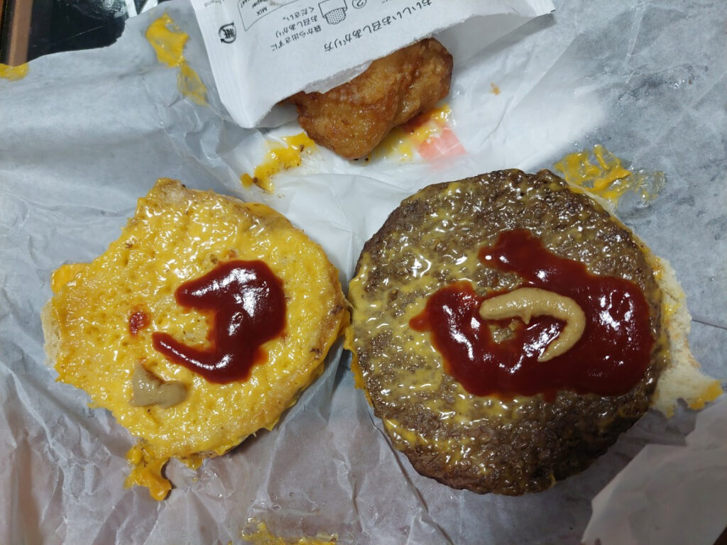 PS.今年の11月の兄弟対決のために、自分も精進して、8月の対決で、ハンデ改正で、10から4なって、スクラッチ負けないように、早くあばらを治して、後、3カ月に向けて調整します・・・。でも、弟と電話していて、心配な事が・・・弟の会社の人が数人、辞めたで、20年以上続いていた、沖縄での兄弟対決のために、休みが取れるか???が・・・取れれば良いのですが・・・ちなみに、今日の朝食も、お客様にもらった、米軍基地のハンバーガー、とセブンイレブンの買ったチキン、ハンバーガーにケチャップと辛子をかけて美味しく頂きました。