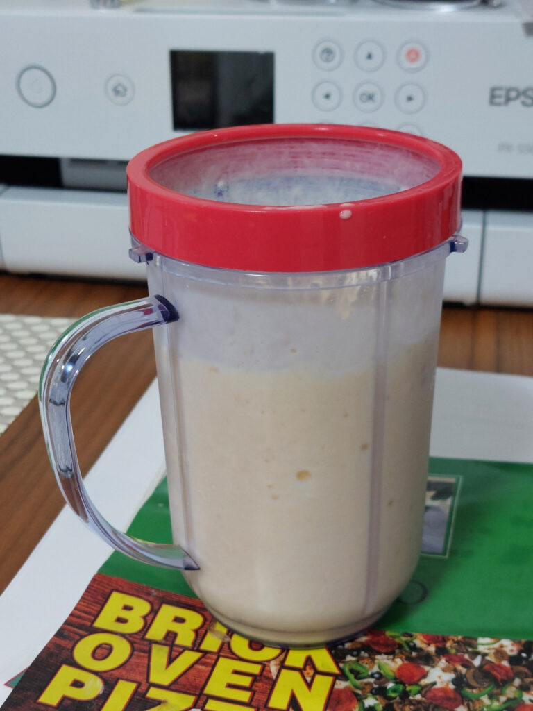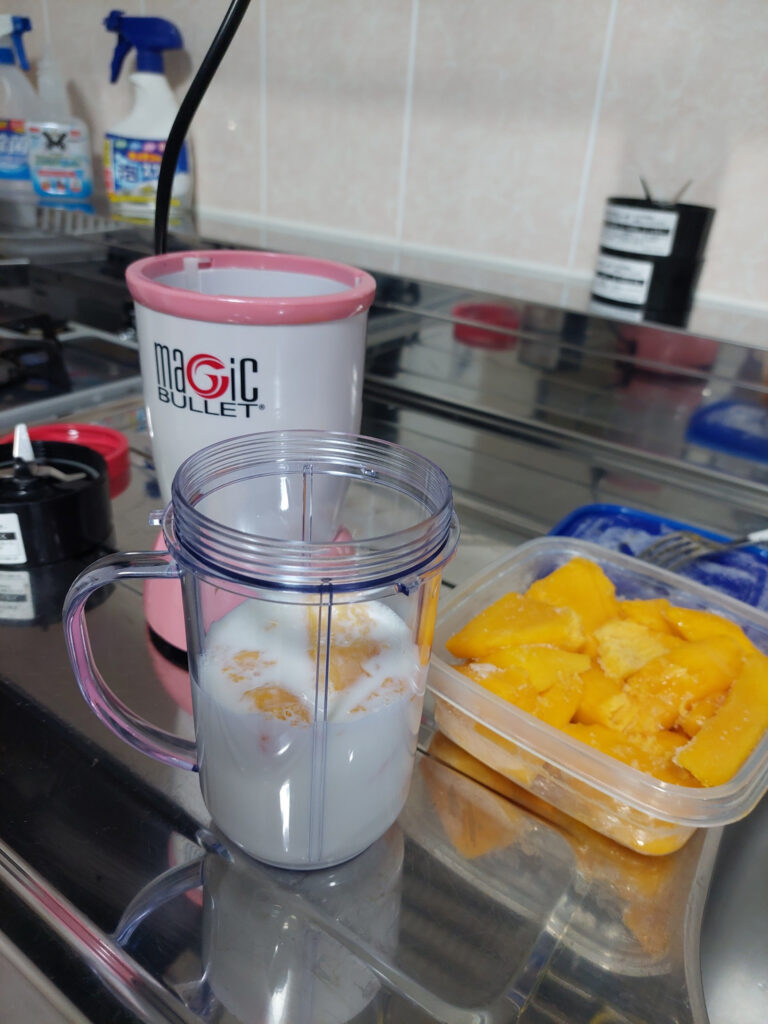 意外???意外???マンゴーはジュースはミルクと合わない???島バナナジュース???スムージー???を毎回、超ーーーく美味しくいただいてます!!!。今日は、マンゴーでチャレンジ・・・。ん???、甘くない!!!なんで???マンゴーはミルクと合わない???島バナナジュースは島バナナ食べるよりとても、甘いのに・・・冷凍のマンゴーとミルクを、ジューサーすると、本来の甘さが全然!!感じない・・・これなら、今度は解凍して、そのまま食べるか???マンゴー100パーセントでジューサーする???島バナナジュースであれだけ美味しいのだから、マンゴーならと・・・とても期待していたのですが・・・あれーーー????ちょっと、ちょっとでした・・・