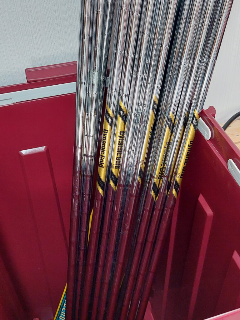 で・・・クラブの、収納スペース用に、大きな、ゴミ箱を4つ、買って来ましたが・・・2つで十分で、しかも、スカスカでした・・・(これからまた、増えていくかもしれないので、ストックがあってもいいですが・・・)。前に、シャフトのリシャフトを、お客様に頼まれ、ダイナミックゴールドを20本注文しましたがそれくらいで、札幌にいた時の方が全然、ありました!!!