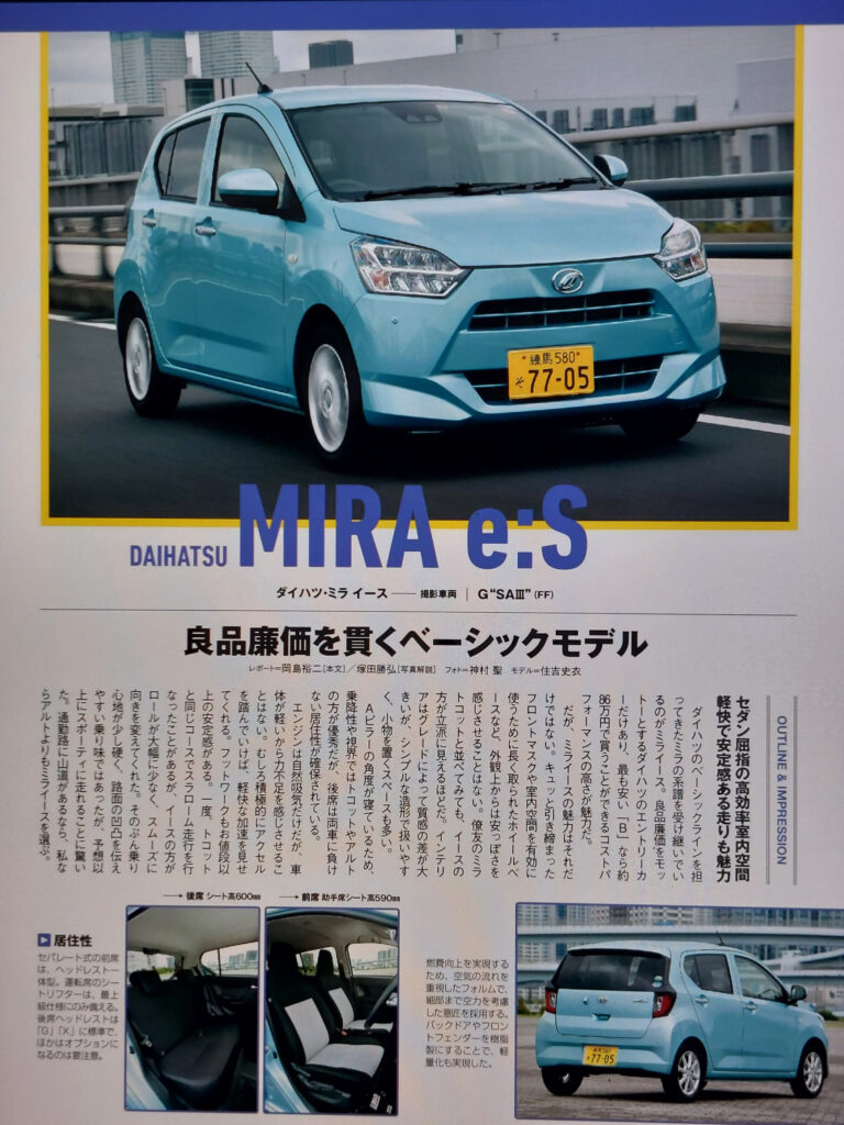 モーターファンの別冊で、軽自動車のすべてを、見ました!!!今ままでは、雑誌を買っていましたが・・・今では、Dマガジンで見ています。今回、2.3カ月後に手に入れる、クルマ、MIRA e:Sも載ってました・・・へーーーー????