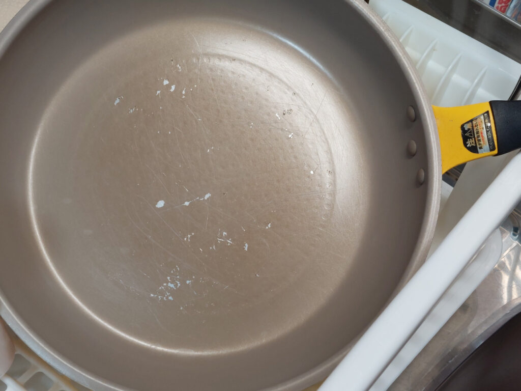 PS.嫁と、離婚してから、買った、テフロン加工のフライパン、良いやつも、買いましたが・・・いかせん小さいので、頻繁に使ってます・・・。初めは、ちょっとの、傷から、自分の頭のように、ハゲの部分成長してます・・・。毎回、油をひかないで、調理したのがダメだったのかな???もう???寿命なの???