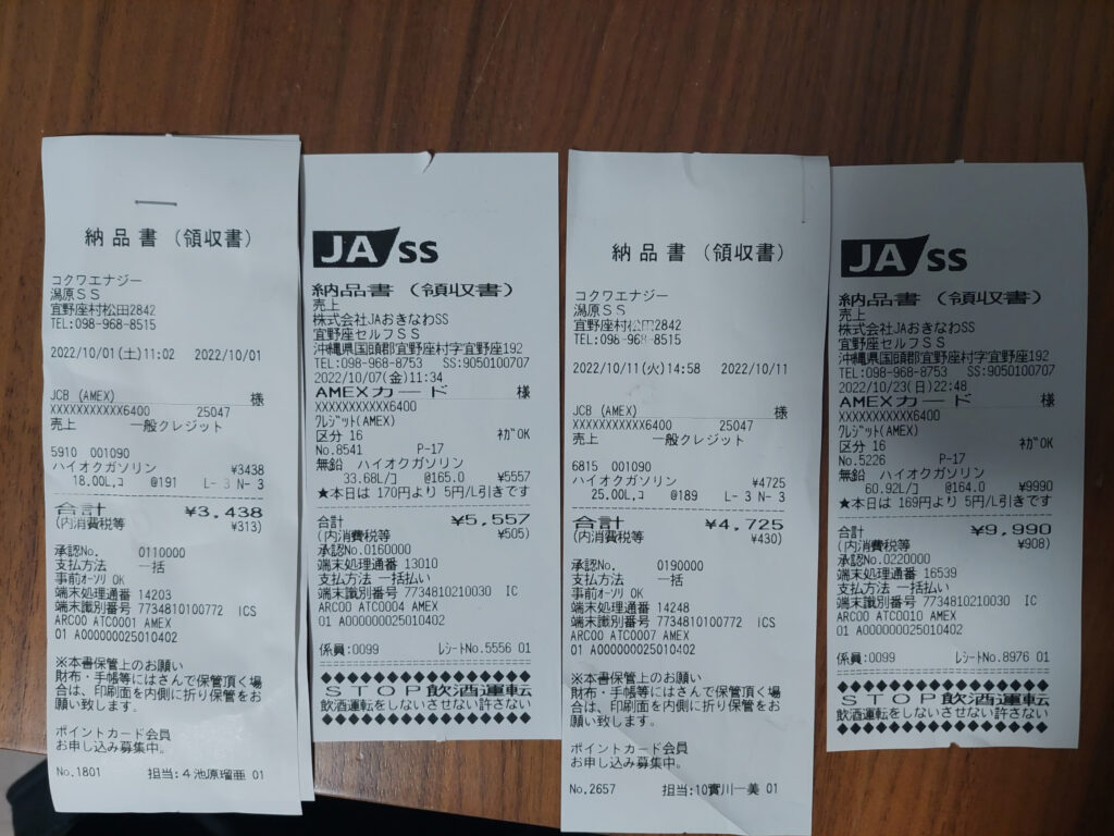 仕事場が少し遠いと、通勤にかかる、ガソリン代が・・・デージー、増えました!!!とても、几帳面な自分と、ズボラな自分、25日までに、5回給油したはずなのに・・・領収書が4枚しかありません。あれれ???なんで???多分、何処かに、紛れてたのか・・・失くしてしまったのか???5回給油は間違いないです!!!几帳面な自分がエクセルで家計簿をつけてるので、日付も金額も・・・23日までの時点で、34488円。