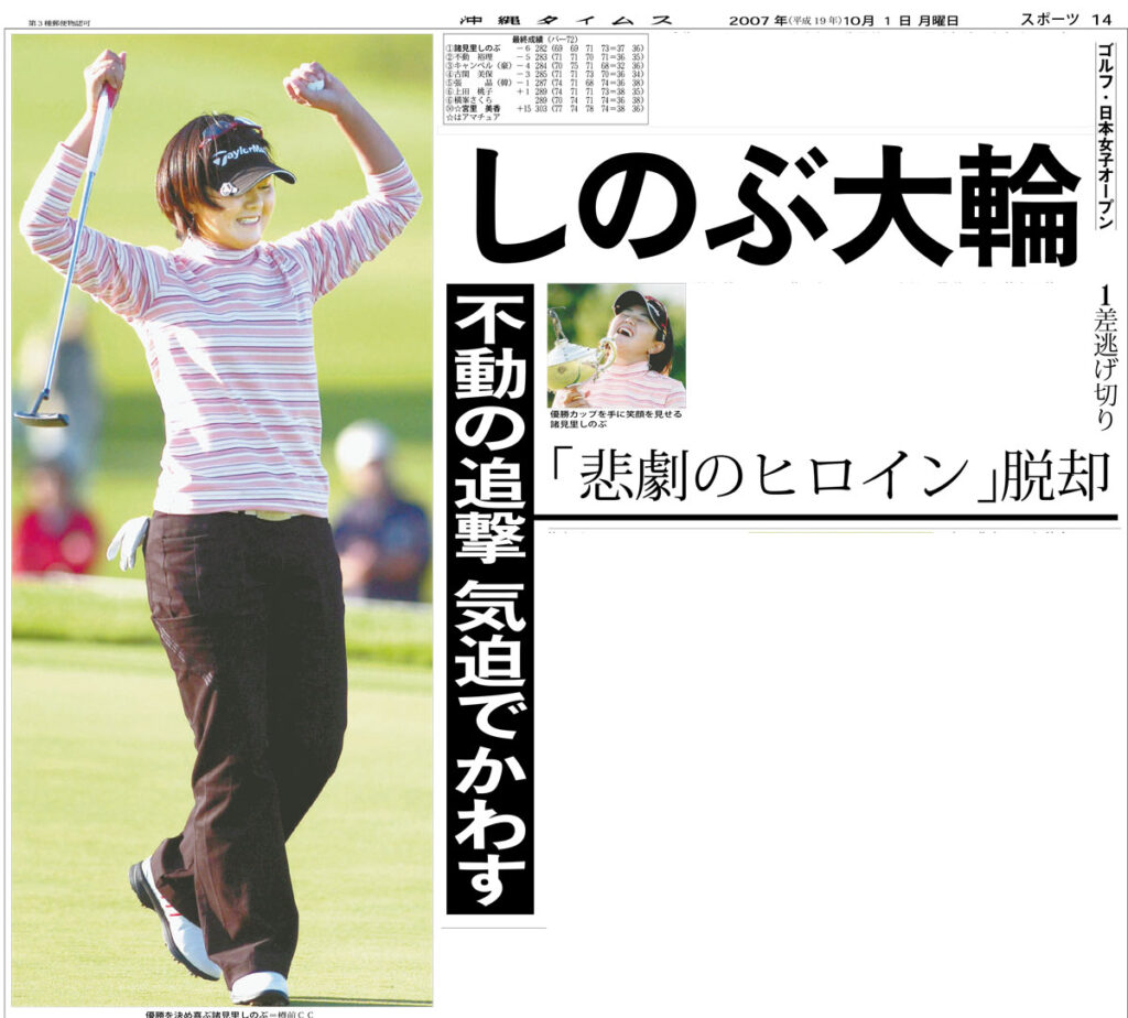 PS.もう、かなり前になりますが・・・ゴルフの諸見里しのぶプロが2007年に国内メジャー大会で初優勝の時も大会を撮影していいました沖縄タイムスに写真を提供して一面と運動面の自分の写撮影した写真がトップを飾ったこともありました。
