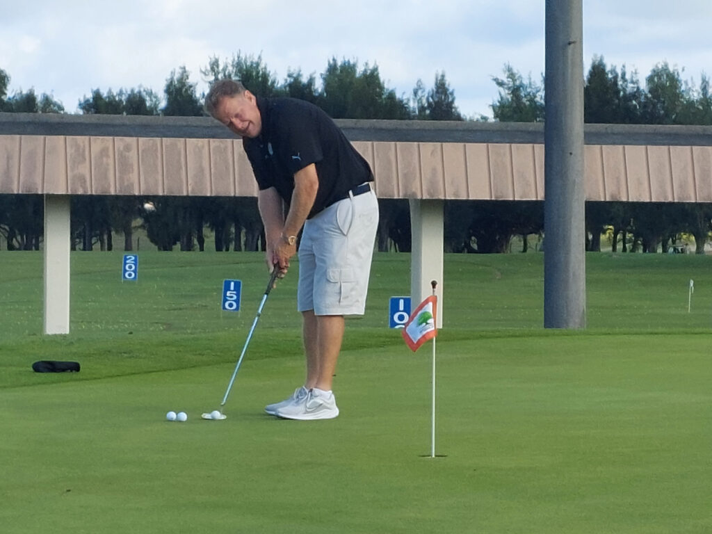 グリーンが、非常に良くメンテナンスも結構スピードもでて、良いので、パットが入りました。結局また、シャンクOBとかが出て、後半はボロボロ。トーマスは44の44=88自分は40の48=88で同点でした・・・天気も最高で、コースも、平日の沖縄のコースより、土曜日でも空いて最高でした・・・。スコアーはともかく、Kくんも大満足みたいです。