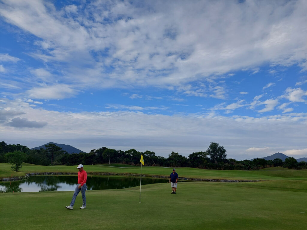 PS.バタバタして、急いでいるときに限って、高速の出口で空いてるはずのETCレーンが大混雑、よく見ると、一般の所が通行止めになってました・・・ギリギリ、ゴルフ場に間に合って、ご飯も食べる時間も無くスタート、1番ホールでセカンドOBも、その後は、ボギー、パー、パー、パー、ボギーと4オーバーで我慢して・・・6番ホールで、グロスでトップに躍り出て・・・良しいけるかな???7番で、パットしたボールが、別の人のボールに当たって、ペナルティーのトリ、8番の長いショートで、バーディーチャンスに付け、ニアピンもバーディーならず、最終ホールで、例の???いつものシャンクが80ヤードから3回、出て池ポチャ連続で9で終わりました・・・その後は、ボロボロで、またまた・・・48、48のやっと100切りでした・・・