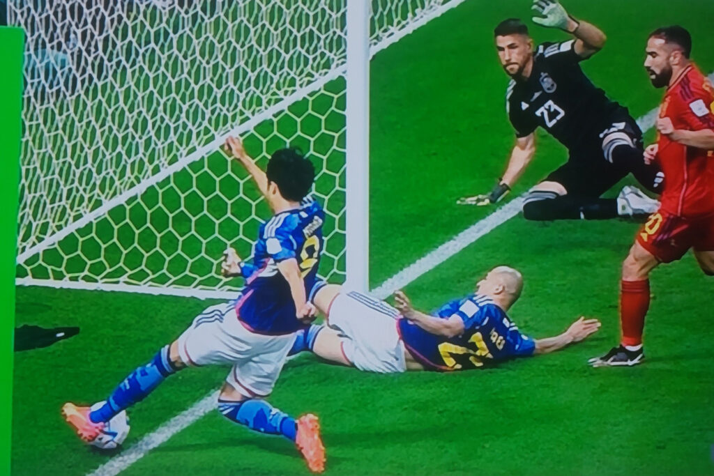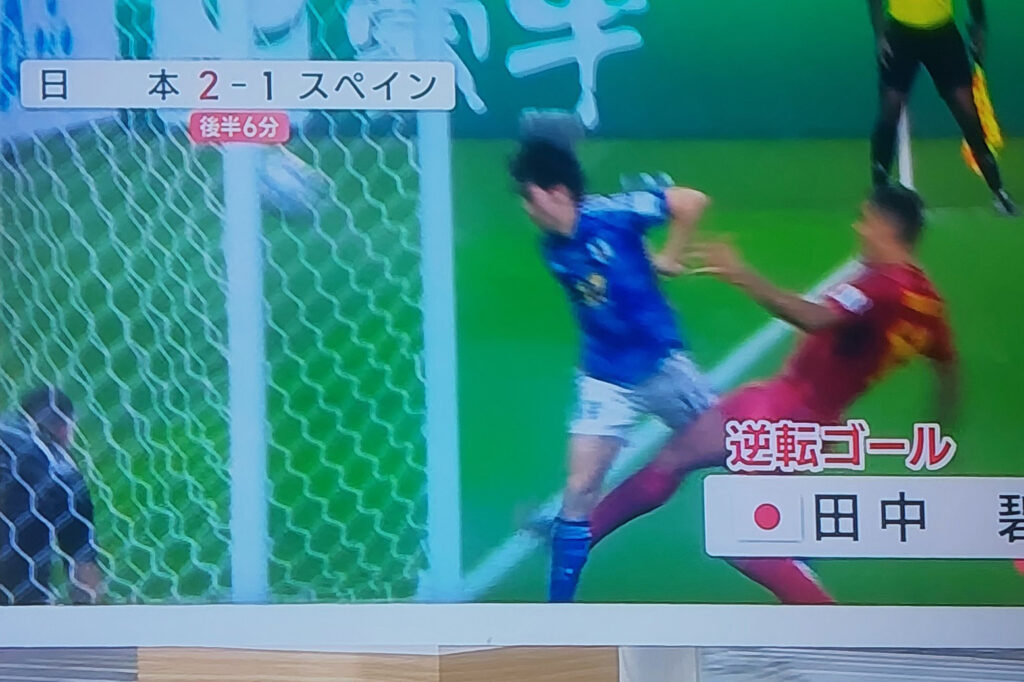 やったー!!!スペインに逆転勝ちして1位で通過!!!コスタリカ戦は何だったの???またまた、やってくれました!!!ボール支配率は、圧倒的にスペインがボールを支配していたけど、終わってみれば、三苫の超ーーーギリギリで折り返す、ナイスアシストを田中が押し込んで2-1で逆転!!!