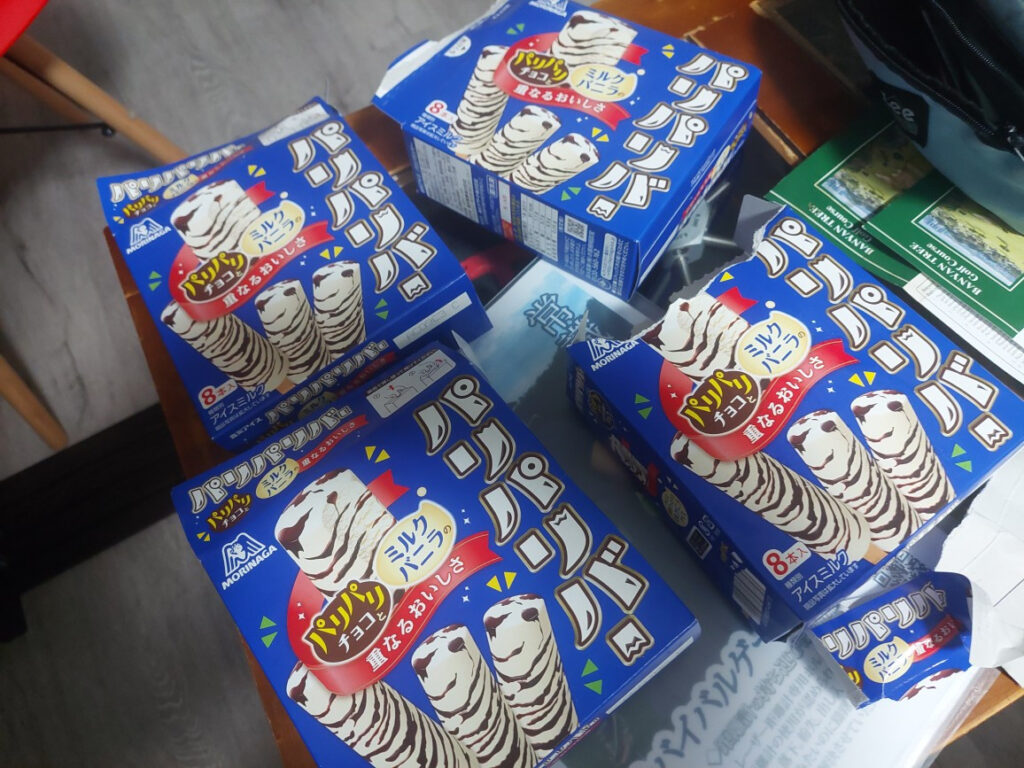 PS.チョコアイスバーを大量に4ケース買ったものの、あっという間に、無くなって、コンビニでまた、棚にあった4ケースすべて、買い占めました。8本入っているので、32本ですが・・・ブログを書いているあいだに、パクパク5本・・・んーーーこれで我慢我慢!!!