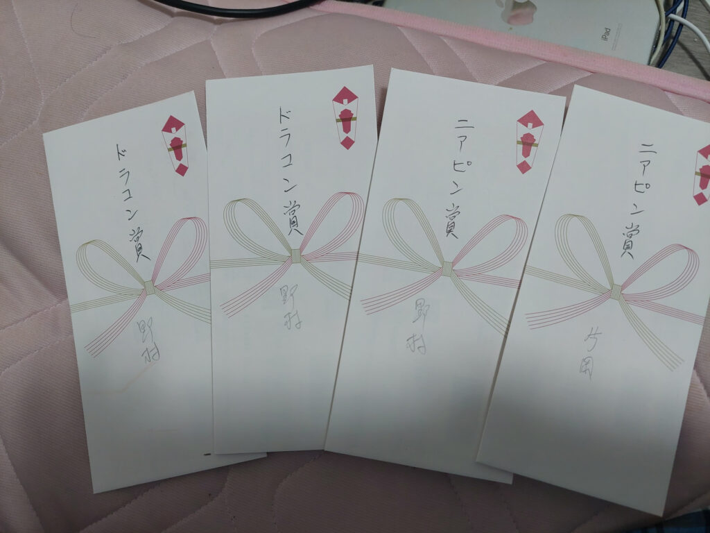 起きたのが7時半だったので、4時間くらい寝ることが出来ました・・・。今回、惣慶のコンペは、片岡さん親子と野村さんは、ゲスト参加なので、ダブルペリア戦も順位には、入りませんが・・・ニアピンとドラコンは権利ありです!!!ドラコンホールが2つ、レディースティーですが、野村さんが、ステルスグローレドライバーにプラスガラスコーティング効果か???2つともゲット!!!ニアピンも、4つのうち、片岡さんが1つ、野村さんが1つと、ニアピン、ドラコンホールは6つのうち、4つゲットです、流石です!!!お見事!!!パチパチ!!!