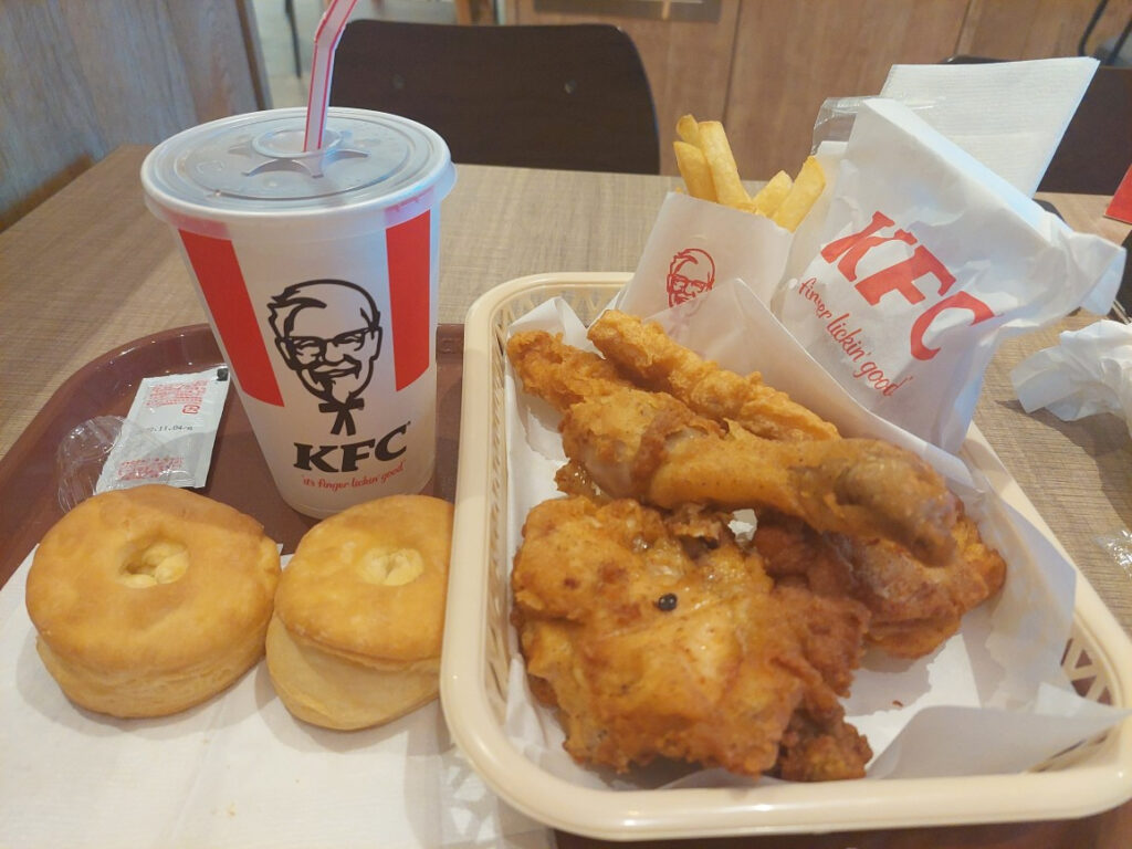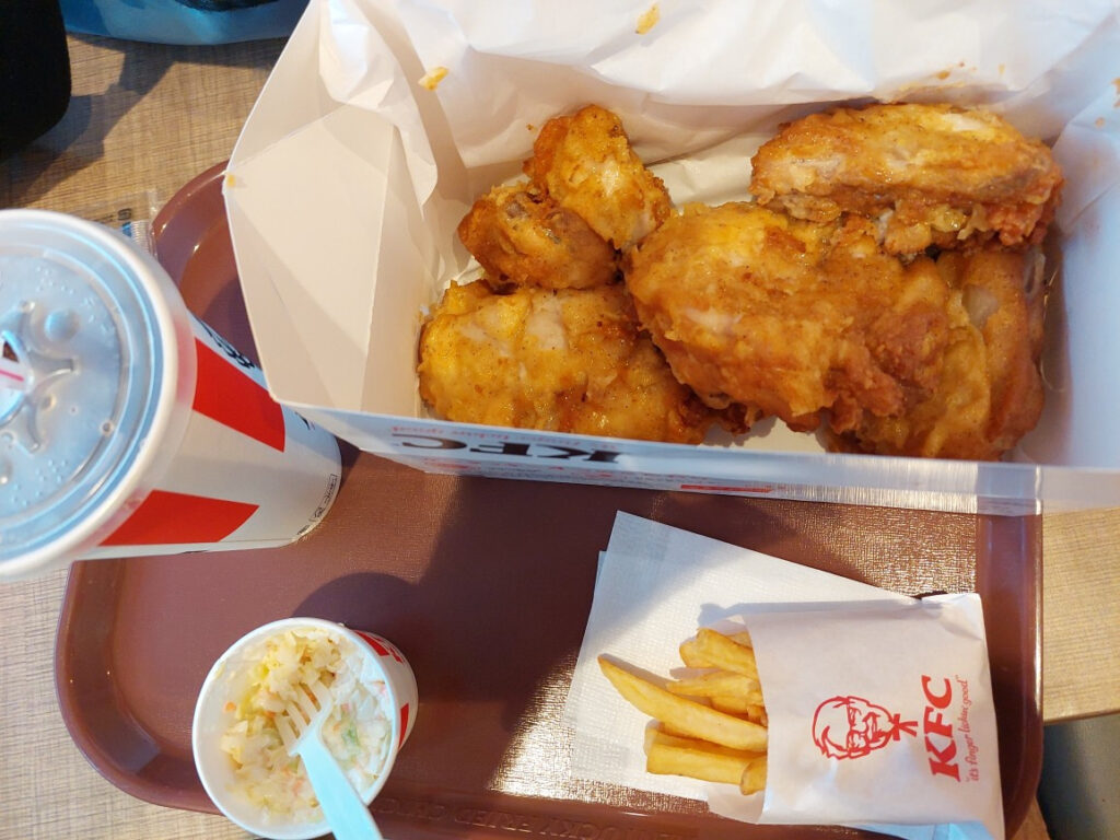 夜の仕事前に、ご成約特典でもらったケンタッキーフライドチキンを友達と食べよう!!!