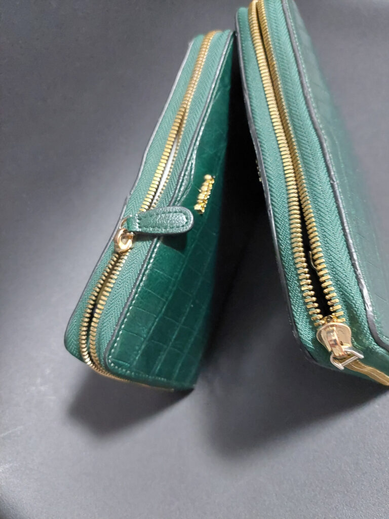 1号そして2号・・・一回り大きくなって、3号の緑色の、長財布同じものを2個、買いました。3号の1はカードをソコソコ入れると、大したお金も入れてないのにパンパン、順序良く入れてるのに、チャックが壊れてしまいました!!!まあ、同じものも買ってあるので、3号の2を使っていると、カードやポイントが一杯収納できるで買ったのに、今度は、チャックを閉めようとすると、チャックを引っ張る革の部分がちぎれて取れてしまいました・・・