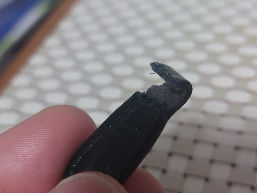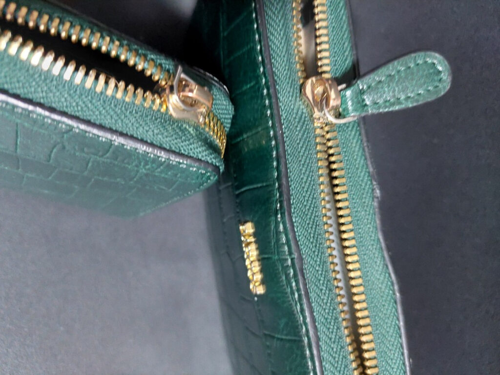 多分、原因は、マチ???カードをそれなりに入れると、お札も数枚しか入って無いのに、幅が足りないため、チャックに負担がかかりすぎでチャックを引っ張る革が引きちぎれるのだと思います・・・クレーム???では無いけど、少し、余裕でお札が入るように、マジにマチ幅を1センチぐらい、最低でも5ミリ以上広げて作って貰えないかな???ちょっとバルコスに、聞いてみよう!!!