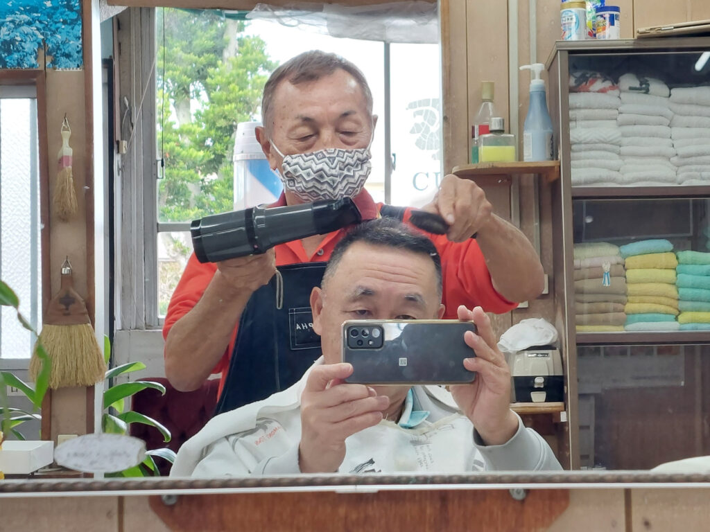20年前から、カットしてもらってる床屋にも行って来ました!!!1972年の返還後にオープンした、名護にある、ヘアーサロン「富士」去年が復帰50年だったので・・・今年で51年目、自分が、行く30年前から、やってる床屋さんです!!!自分は、日ハムのキャンプで名護にカメラマンとして来ている時に、ホテルが近所で、基本、北海道では、冬は寒いのであまり髪は切らないんですが・・・