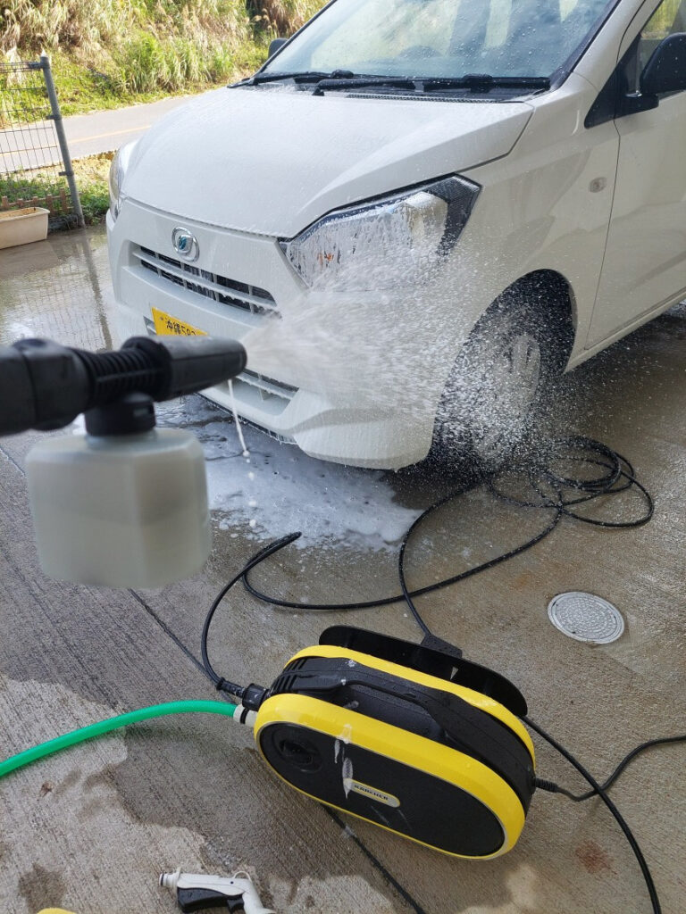 今度は、初めて使った、アタッチメント、洗剤を入れて、泡々の洗車!!!ちなみに、洗剤は何入れて良いのかわからなかったので、今回は取り合えず、キッチン用洗剤を入れてみました!!!んーーー、油汚れに強いのか、結構綺麗に擦って落ちなかった汚れが落ちます、でアタッチメント元に戻して、高圧洗浄機で洗剤を洗い流して、拭き取りの面積も、ステーションワゴン比べると半分以下???なんで、楽勝にピカピカなりました!!!パチパチ!!!