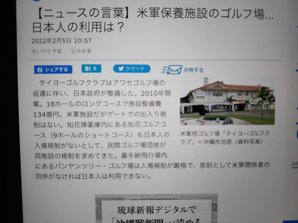 去年も年末に、全国からゴルフ友達が来ましたが!一カ月前でもコースを取るのが大変でした。今回も2月5日の日曜日は平日でも、きびしいので結局トーマスに頼んで嘉手納基地の中のバイアンツリーコースを取ってもらってエスコートしてもらいます!