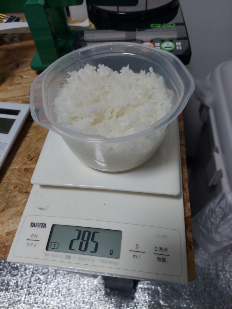 PS.ごはん一膳って、何グラム???毎回、ご飯は10合炊いてます、冷凍庫に入れる関係で、タッパーに一杯詰めてました・・・ネットで調べると一膳は150グラムでタッパーを一杯に詰めたら320グラム以上あります・・・毎回、2膳以上づつ食べてた計算です・・・なので、今回はタッパーに軽盛で15個にしましたが・・・285グラムとまだまだ次回はもっと軽盛に・・・