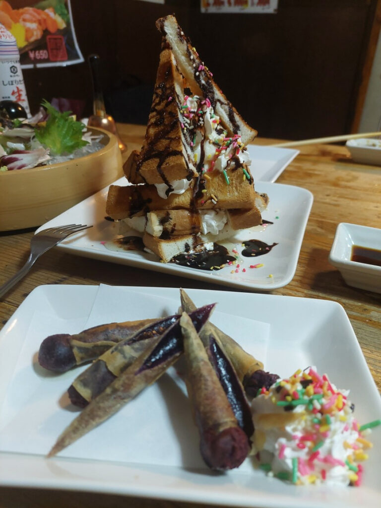 PS.なので、沖縄に来た後輩が声をかけてくれるのも、すごく嬉しいし、楽しく飲んで、最後は〆の、紅芋のスイーツまで!今日はこれから、カヌチャにゴルフに行って来ます、お迎えに来た、後輩が自分の好きな、純米酒を1升差し入れしてくれました、嬉しい!超ーー!!!嬉しいし、気持ちも・・・!