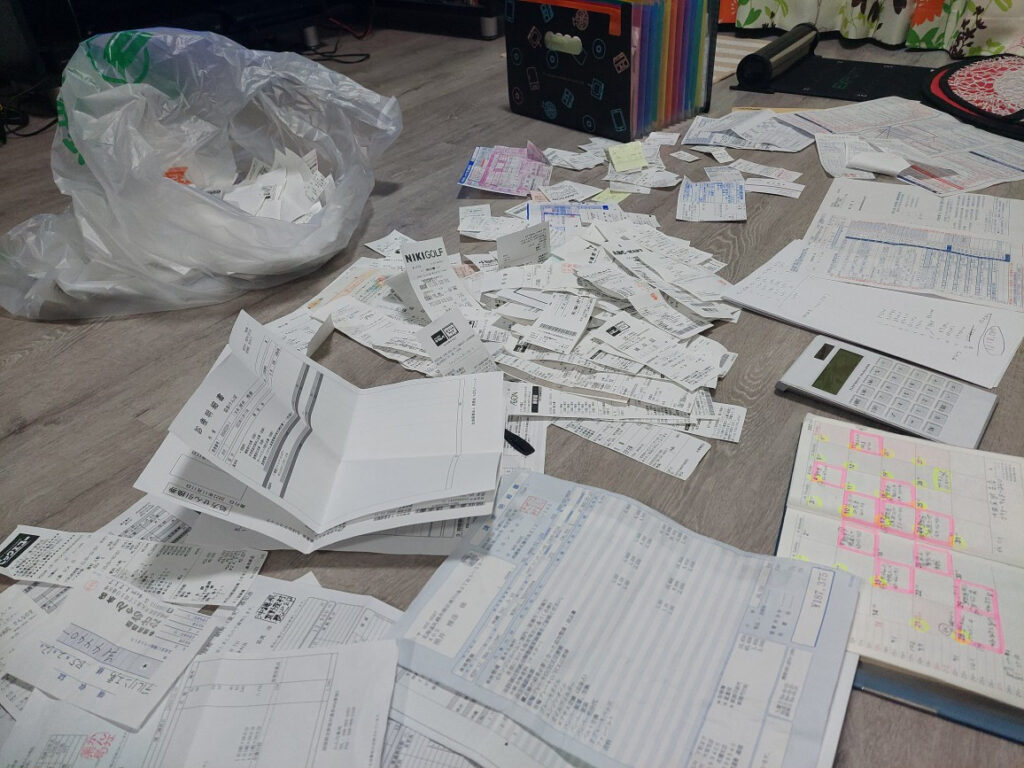 7時間、領収証の山と格闘しながら、やっと?ゴールが見えてきました!