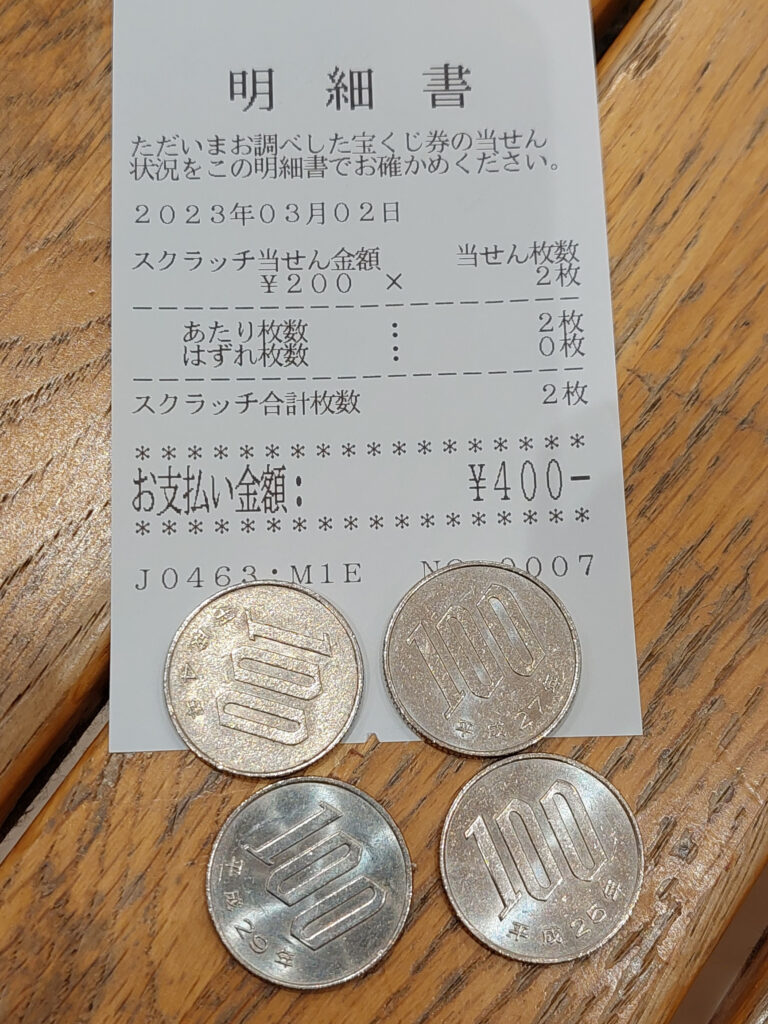 スクラッチ宝くじの末賞はいつも、期限切れになってますが・・・今回は、イオンに宝くじ売り場があったので・・・換金しました400円。これで、シェークかクレープを買って、食べながら宜野座に帰ろうと、クレープ屋さんに行くと、クレープは450円で金額足らず・・・。380円でタピオカ黒糖紅茶があって、それにしました・・・が・・・サイズはいかがなさいますか?でラージでと言ったら、530円結局オーバーでした。