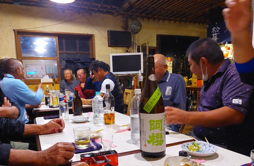 宜野座の惣慶区のゴルフコンペの反省会に行って来ました!ゴルフ友達から、頂いた美味しいそうな、日本酒を1升持って行って、日本酒好きな反省会に参加している方と美味しく頂きました。やはり、美味しい日本酒を一人で飲んでもつまらないので、味のわかってくれる人達と楽しく飲みたいです。健康診断が早く終われば・・・反省会だけじゃなくて、ゴルフにも参加しようと思いましたが・・・健康診断の出張健康診断みたいな感じで、あまり、手慣れて居なくて時間がかかりました。ゴルフで言うと、人数の多いコンペなのに、アウトスタートのワンウェイみたいな感じで。グループに分けて、色々な検査する所があるので、ショットガンスタートスタートにすれば、良いのに???