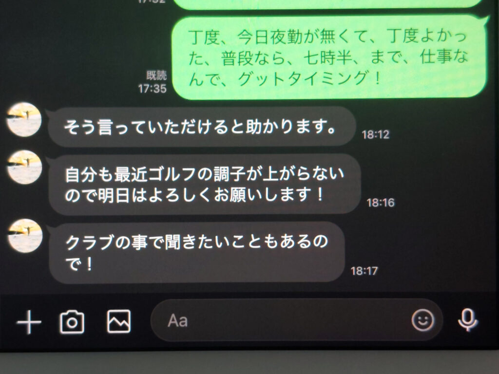 でも久しぶりにヘルプライン(外国人スタッフの方)ゴルフ友達のロミオさんに会って、次の日曜日に、クラブの測定とフィティングをしたいと・・・その日の自分の予定を帰って確認すると午後からラウンドが入っていたので、午前中にクラブの測定とフィティングをして、幹事に行って、その友達も連れてラウンドしようと思います。