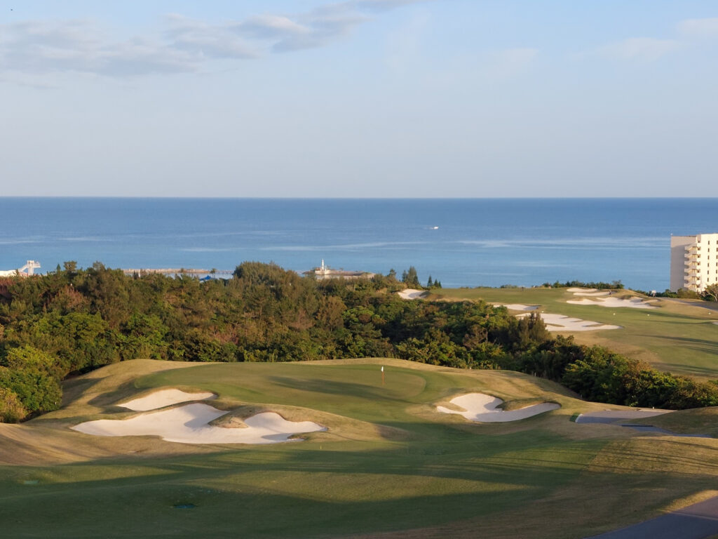 PGMに行って来ました、自分の中では、ここは沖縄で一番ゴルフ場???お客様兼ゴルフ友達のよしたか君のお誘いで、PGMをラウンドしてきました!元々、比嘉兄弟のお兄さんと一緒にまわったのがきっかけで、弟の泰斗くんに知り合って、よしたか君は泰斗くんの同級生でパワーヒッターでベンタスに、リシャフトしたお客様。PGMはスタートがデイゴで495ヤードのロングです、よしたか君は2打目をピンそばに乗せ、イーグルスタート。自分はパーオンの3パット・・・その日はレーザー距離計の電池切れ、当然予備もあるはずなのに・・・見つけられず(家に帰って、キャディーバッグを探すとありました、もっと探せば良かった!)、腕時計のGPSとカートのGPS頼みも・・・2つ距離が違いすぎて(20ヤードぐらい誤差が・・・)縦の距離が全く合ずバンカーに10回以上入りました・・・グリーン周りがバンカーだらけなんで。