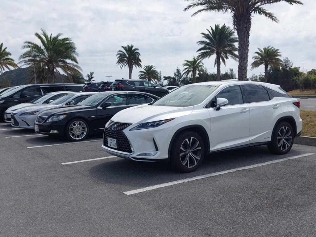 PS2.流石、良いコースなんで、高級車が・・・レクサス、レクサス、レンタカー、レクサスみたいな感じで並んでます・・・自分も、余裕があればレクサスRXに乗りたいです、新型はフロントグリルが、ナポレオンフィッシュ見たくて、カッチョ悪いんで旧型が良いなーー最近では少ないゴルフバックも横に4つ積めるクルマなんで・・・自分のステーションワゴンもヤシの木があると絵になってる???