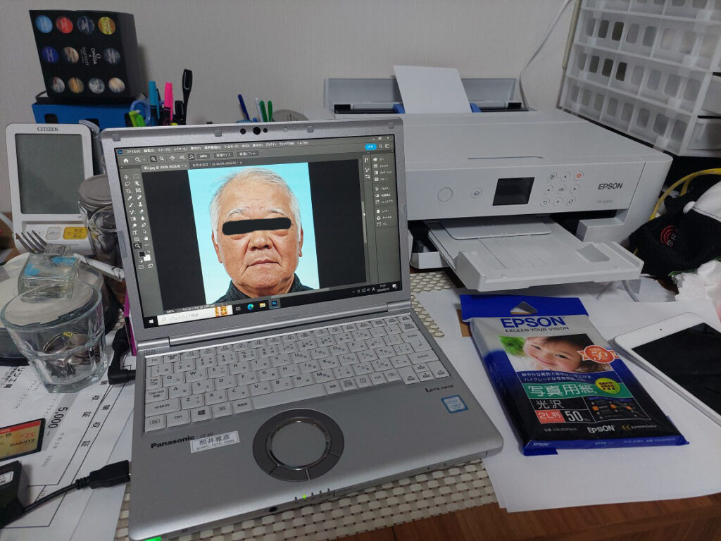フォトショップがカメラマン時代使っていたものと、自分が使っている最新版は、使い方が違いすぎて上手くいかず・・・本来、サイズを4.5センチ、3.5センチに合わせたパスポート申請写真データーを、2Lサイズの印画紙にコピー&ペーストで4枚張り付けて、プリンターで印刷するつもりでしたが・・・上手くいかず、結局4枚プリントするのに、印画紙4枚使いました。その前に印画紙じゃなく、印画紙をセットしてるのに、下の普通紙にプリンばかり出て来て、やっと印刷出来ました。ヤレヤレ!!!いつも使ってないと忘れてる???フォトショップの使い方は、5月に帰った時に、後輩の桜かチエに聞いてみよう、何か単純な事を見落としてるだけ???前は出来たのに・・・なんだろうけど・・・本当は・・・認知症?アルツハイマー?脳が縮まってきている?