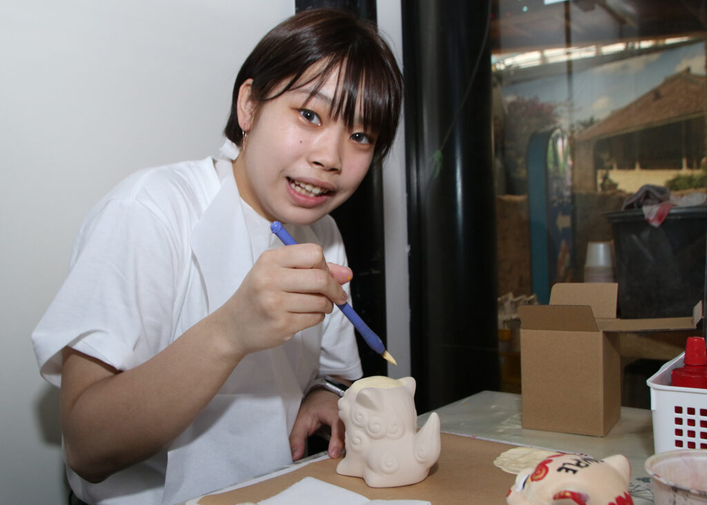 2日間ですが・・・24日も超ーーー弾丸で沖縄を少し楽しんでもらいました!!!まず、沖縄の20数年来の友達、仲ちゃんの紹介で、琉球村から、スタート・・・琉球村古民家、イベントではエイサー、家の守り神、シーサーにペイント体験(はじめはちょっと、と思いましたが出来上がりは完璧です!はなまる!!!)・・・次の元気村のイルカ体験プログラムまで、時間がタイトなので、昼飯は、名護のA&Wでハンバーガーを頼んで、食べながら移動、沖縄テーストの一部を楽しんでもらいました。