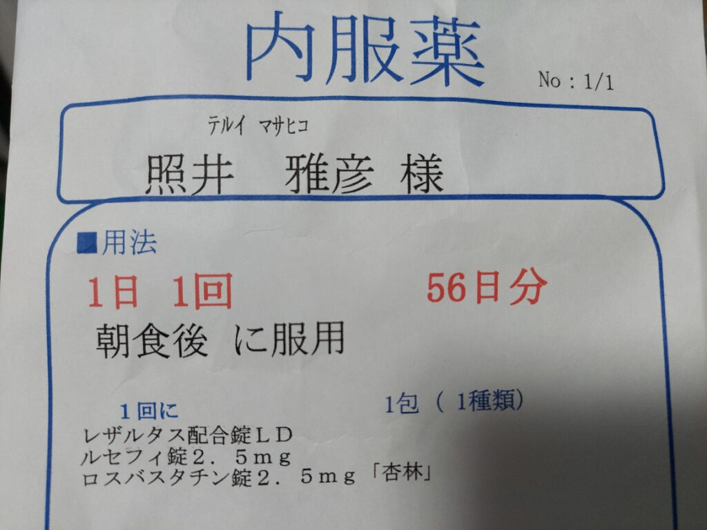 あれーーー???もう2カ月経つの???つい最近、地元のかんな病院に行って2カ月分処方してもらったばかりのような気がしますが、糖尿病の薬と高血圧の薬が後5袋しかありません。2か月分なんで、60袋(バラバラにもらうと数が合わなくなるので一袋に薬をまとめてもらってます)?と薬の袋を見ると2カ月分って?56袋?しかも、2月は2日短いのに・・・。