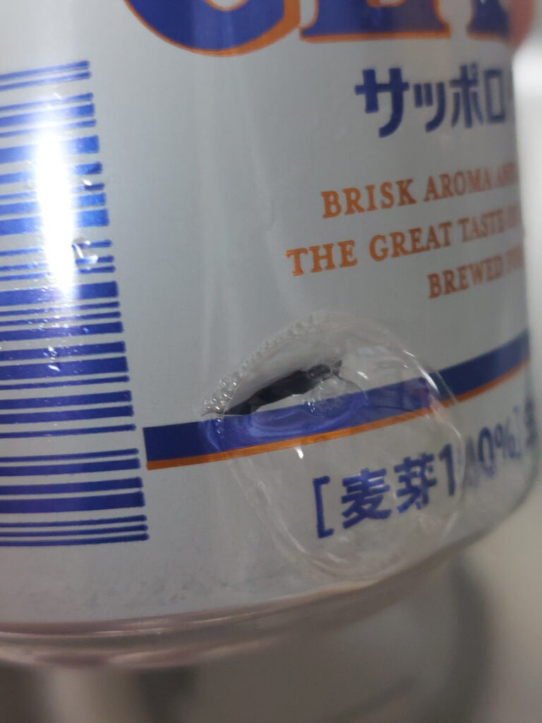 PS2.えーーーショック!!!なんで????、キンキンに冷やそうと、ビールを冷蔵庫に入れようとすると、なんで、漏れてるの???缶の横に穴が空いて、貴重なビールが冷蔵庫の中にボタボタと・・・。アルミ缶薄いけど、こんなに簡単に切れて、穴開くのかな???初めて・・・