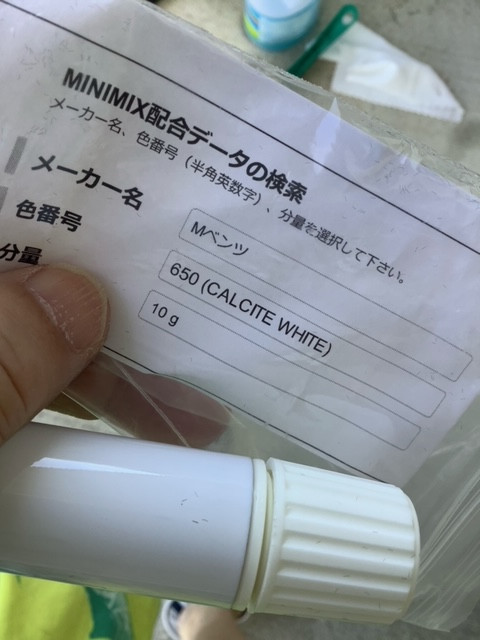 シンナーが蒸発して抜けてカピカピに固まって使えません、早速ネットでカルサイトホワイトを注文して買わないと。札幌のクルマもその色で、持ってましたが・・・売った時に、ダッシュボード入れたまま、カピカピになってるかも知れませんが・・・。札幌だと家からディーラーも近かったのですぐ買いに行けましたが?沖縄のヤナセは浦添に一軒だけなので、ネットで注文します。