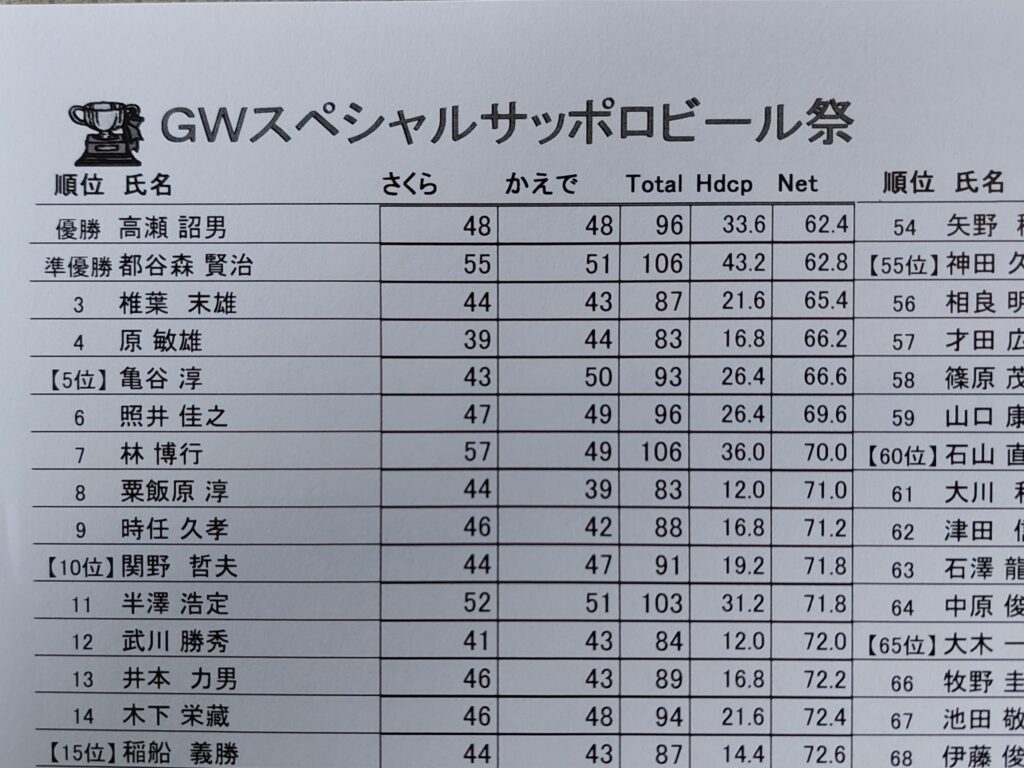 初戦のサッポロビールコンペは、全く去年と同じ展開に・・・