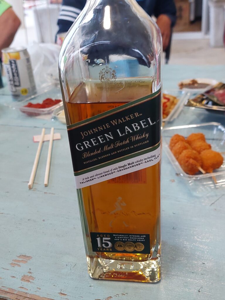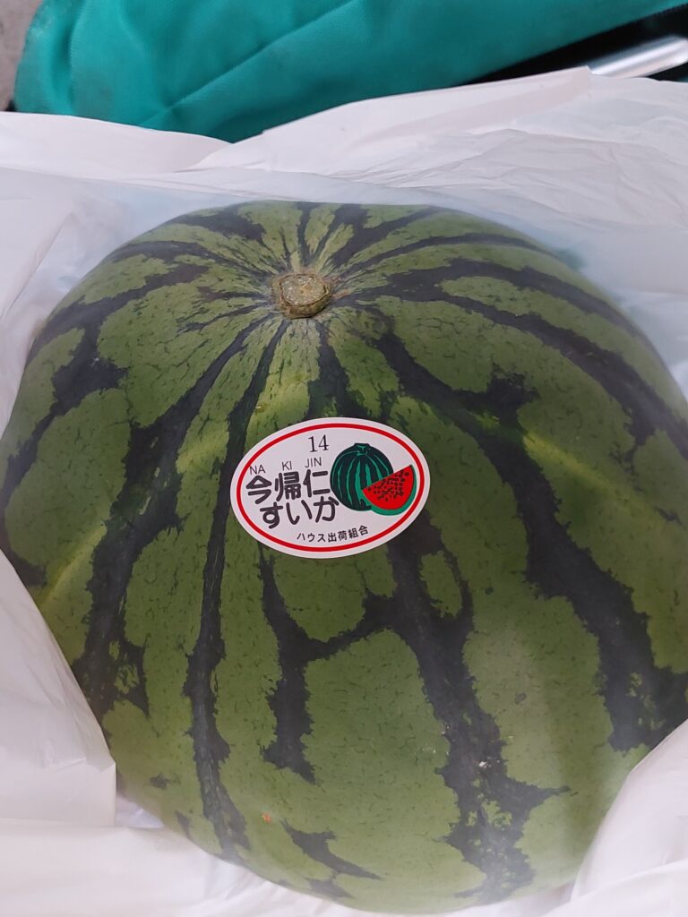 またまた、寝ないでラウンド、かなり早めに着いたので、クラブハウスの食堂で中身野菜炒めをつまみに、炭酸麦ジュースを飲んで出陣。3ホール目まで、毎回バーディー逃がしのパーも、一番短いショートが???シャンクの距離でアプローチイップス出て、それからガタガタで4位でしたが・・・今帰仁で農家を営んでいる方の提供の立派な巨大スイカを賞品でいただきました!持ってみると重くて、スイカってこんなに重かたっけ?と計ってみると6.8キロまありました・・・。反省会の後、夜勤無ければ、トーマス提供のジョニーウォーカーのグリンラベル飲みたかった!